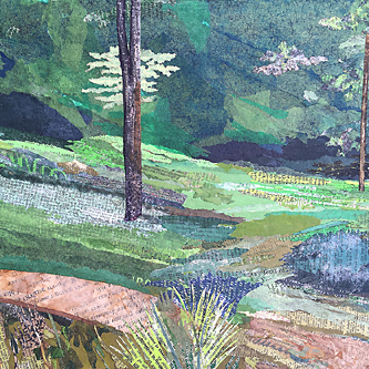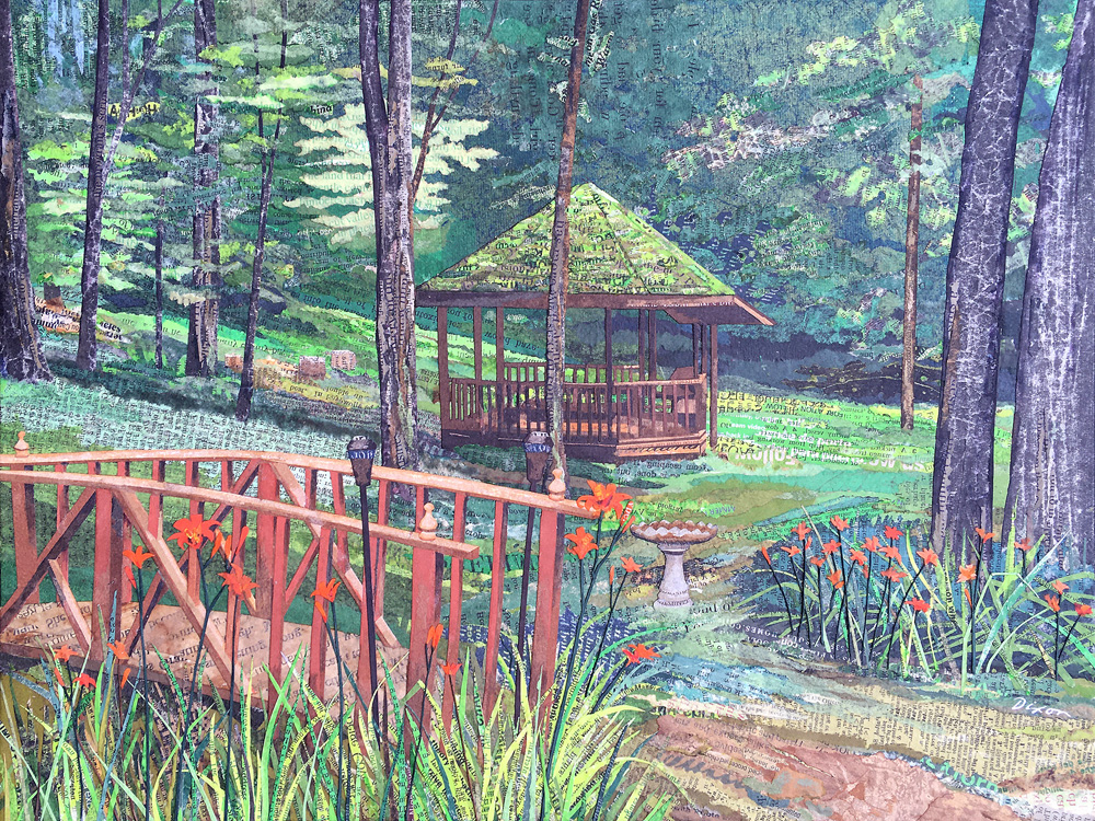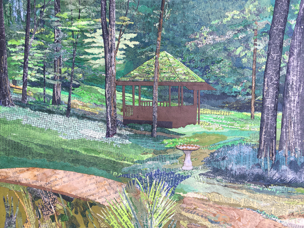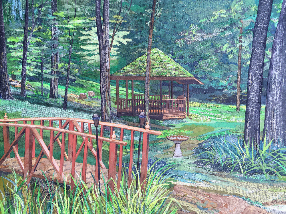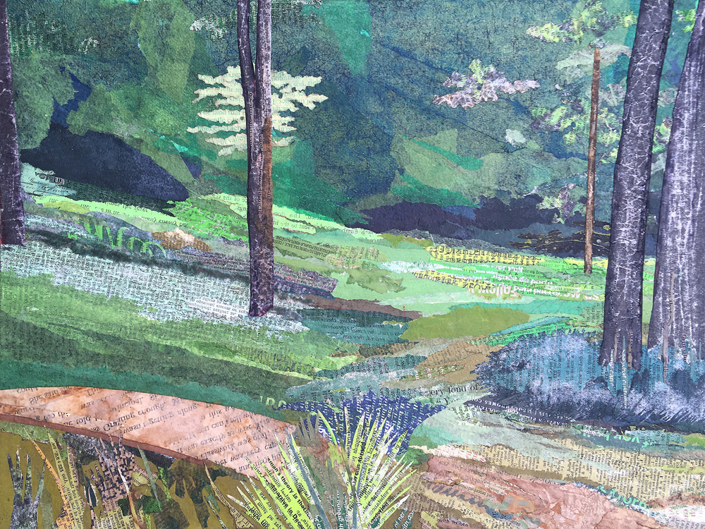 The false point of my worry is demonstrably not the case, as far I need to be concerned. Others are entitled to their independent assessment. The first collage evolved as a multi-session, plein-air impression until I brought it inside for a lengthy finish. The second was time consuming, too — a studio-based commission from a provided photograph. Both benefit from everything I have learned about the potential of paper as a painting medium. Both combine intuitive abstraction and crafted precision for what I intend to be representation full of lyrical expression. Please take a closer look at the development of It’s Heaven Back There: