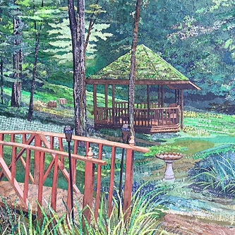During the closing months of my big traveling show, a notion kept intruding — perhaps I had peaked as a paper landscape artist. These kinds of pesky thoughts and feelings are not uncommon at any age. They should never take somebody by surprise in the fourth quarter of a game. Before long, I finished Haven on the Knob, and then the piece featured in this entry. That settled it.