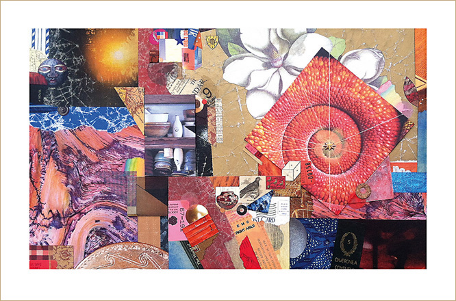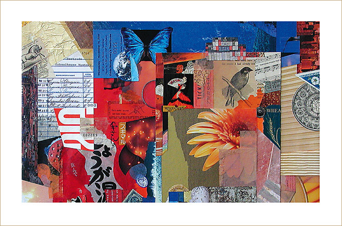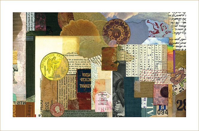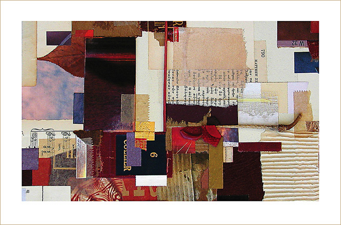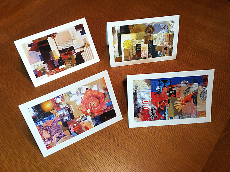 Everything I create is rooted in my investigations of the small format, and now you can purchase note cards derived from some of these collage artworks. A set of four horizontal note cards contains one each of four assorted cards, with details from Structural Integrity, Selective Fusion, Contemplation Ajar, and Mystery Solved. A set of eight cards is also available.