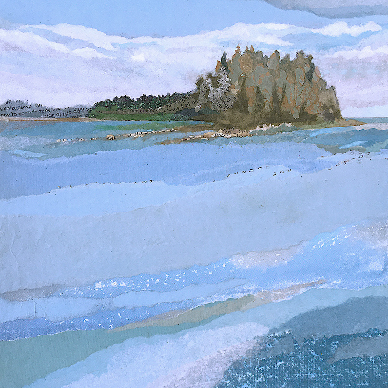 The false point of my worry is demonstrably not the case, as far I need to be concerned. Others are entitled to their independent assessment. The first collage evolved as a multi-session, plein-air impression until I brought it inside for a lengthy finish. The second was time consuming, too — a studio-based commission from a provided photograph. Both benefit from everything I have learned about the potential of paper as a painting medium. Both combine intuitive abstraction and crafted precision for what I intend to be a pictorial representation that is full of lyrical expression. Please take a closer look at the development of It’s Heaven Back There: