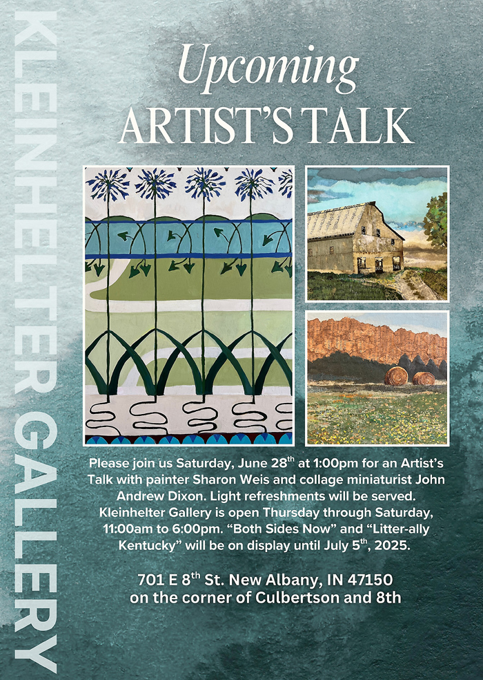The plein air tradition is alive and well in Central Kentucky. My thanks to Arts Connect for an outstanding “Paint the Town” event, with sincere appreciation to juror James Swanson for his recognition of collage as a plein air medium. A 2nd-place prize was quite unexpected, because it was everything I could do to meet their timetable in the extreme heat. All artwork had to be delivered framed and ready for immediate display by the 8am to 2pm deadline.