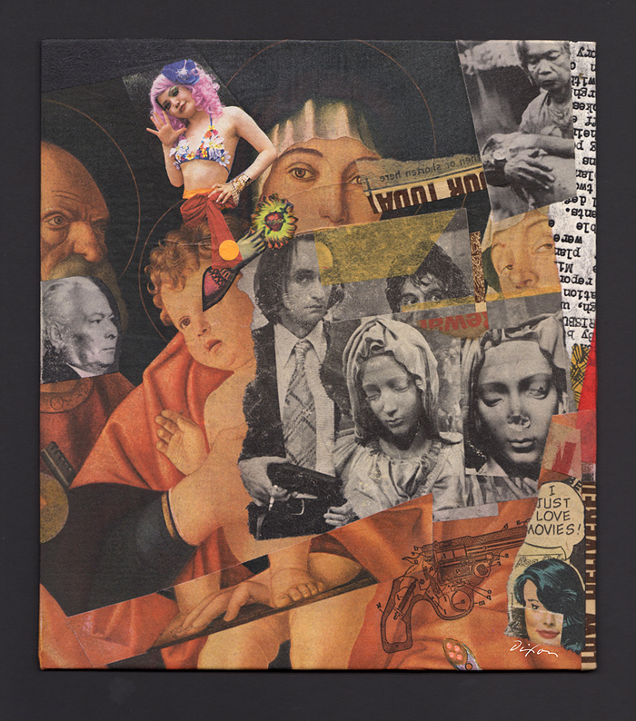 A retired Dominican Sister of Peace saw a collage triptych at the funeral of her friend. It was a grouping that I had collaboratively assembled with my late patron. Facing a terminal condition herself, Sister had been reducing her few possessions and arranged a commission for me to make a similar creation. She had lived an extraordinary life of educational and administrative service, including an extended ministry to serve the native people of Belize, but she was physically and spiritually detaching from all of it. Because Sister had taken a vow of poverty, her devoted nephew wanted to make an enduring memorial possible, and I was honored to accept the collage assignment.